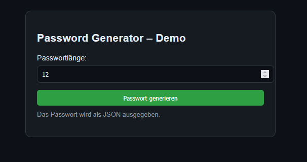 Zufallspasswörter generieren (Länge/Typ per Parameter). Perfekt für Tools-Seite oder API. password.php password.json demo_passwordgenerator.html
